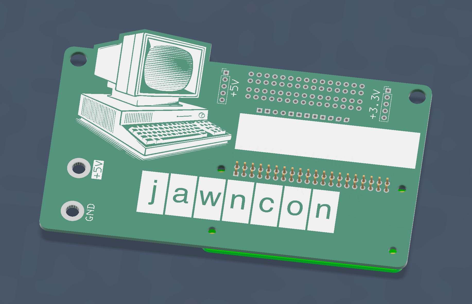 Your JawnCon badge can also function as a Raspberry Pi Hat with breakouts for adding additional components,